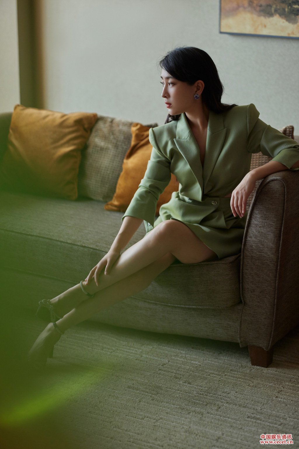 馬蘇果綠色連身裙美照 從容篤定靜謐動(dòng)人