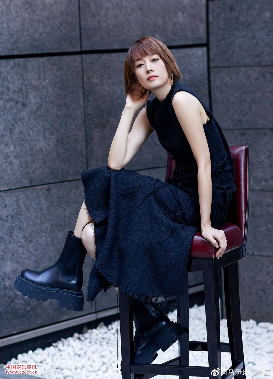 馬伊琍純黑毛呢長(cháng)裙搭配中長(cháng)筒皮靴既減齡又干練