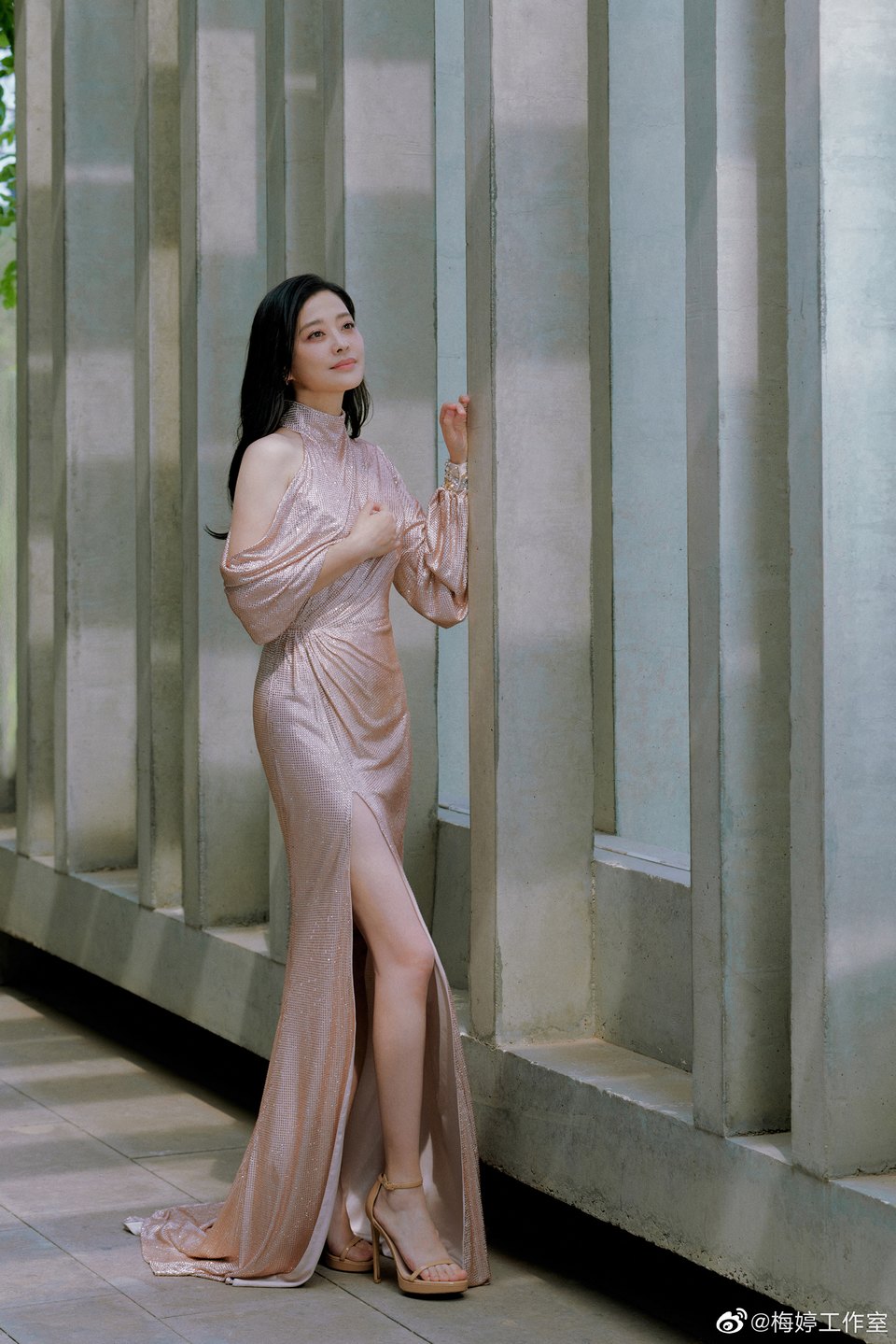 梅婷淡粉柔軟絲綢長(cháng)裙亮相 自在時(shí)光煥發(fā)魅力