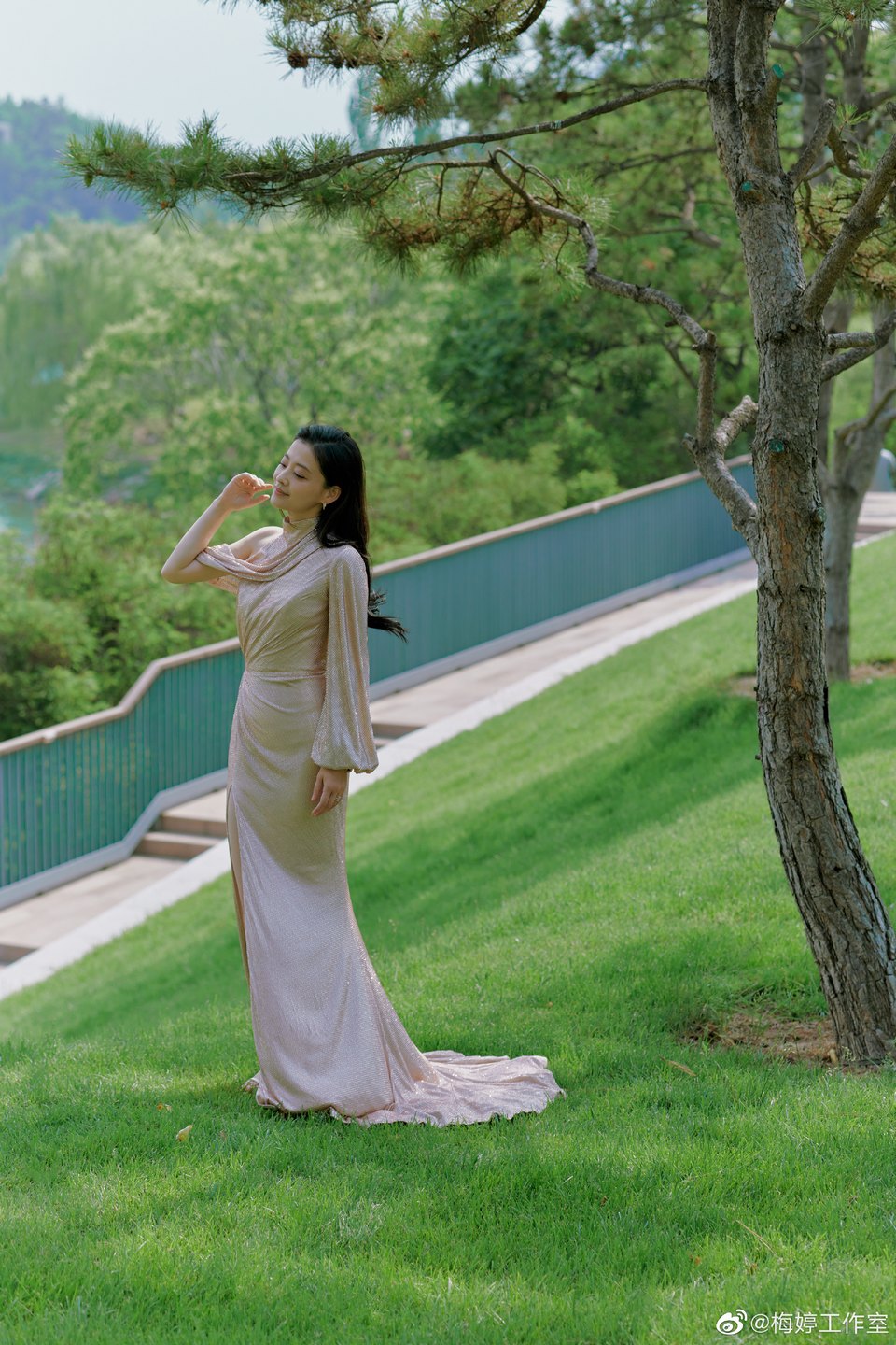 梅婷淡粉柔軟絲綢長(cháng)裙亮相 自在時(shí)光煥發(fā)魅力