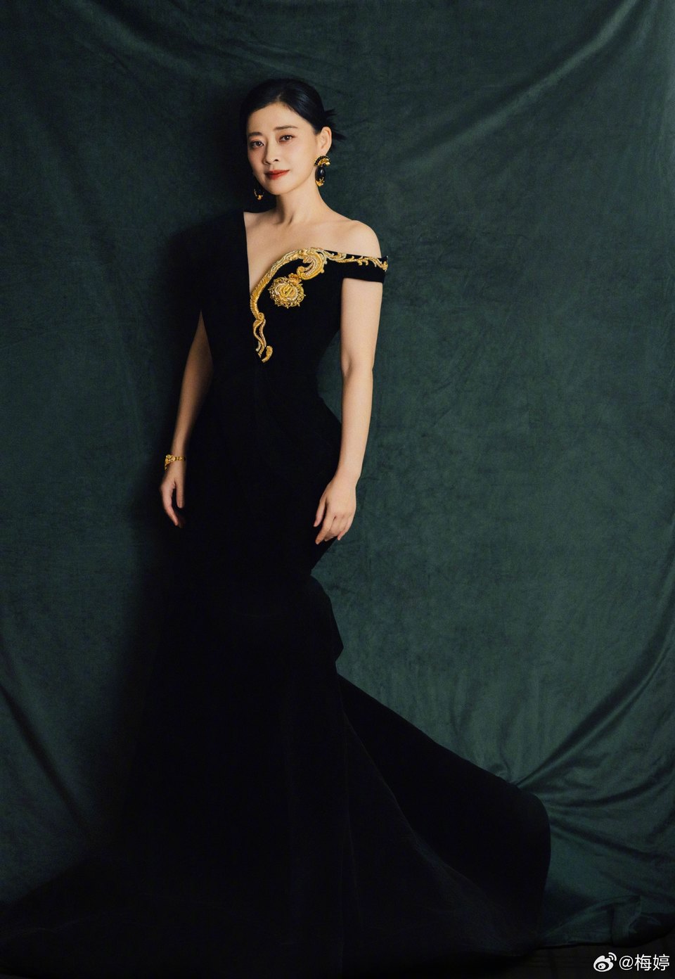 梅婷黑色絲絨裙優(yōu)雅大方 半露香肩十分吸睛