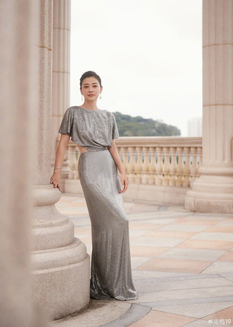 梅婷一身銀色禮服華麗優(yōu)雅 熠熠生輝綻放光彩