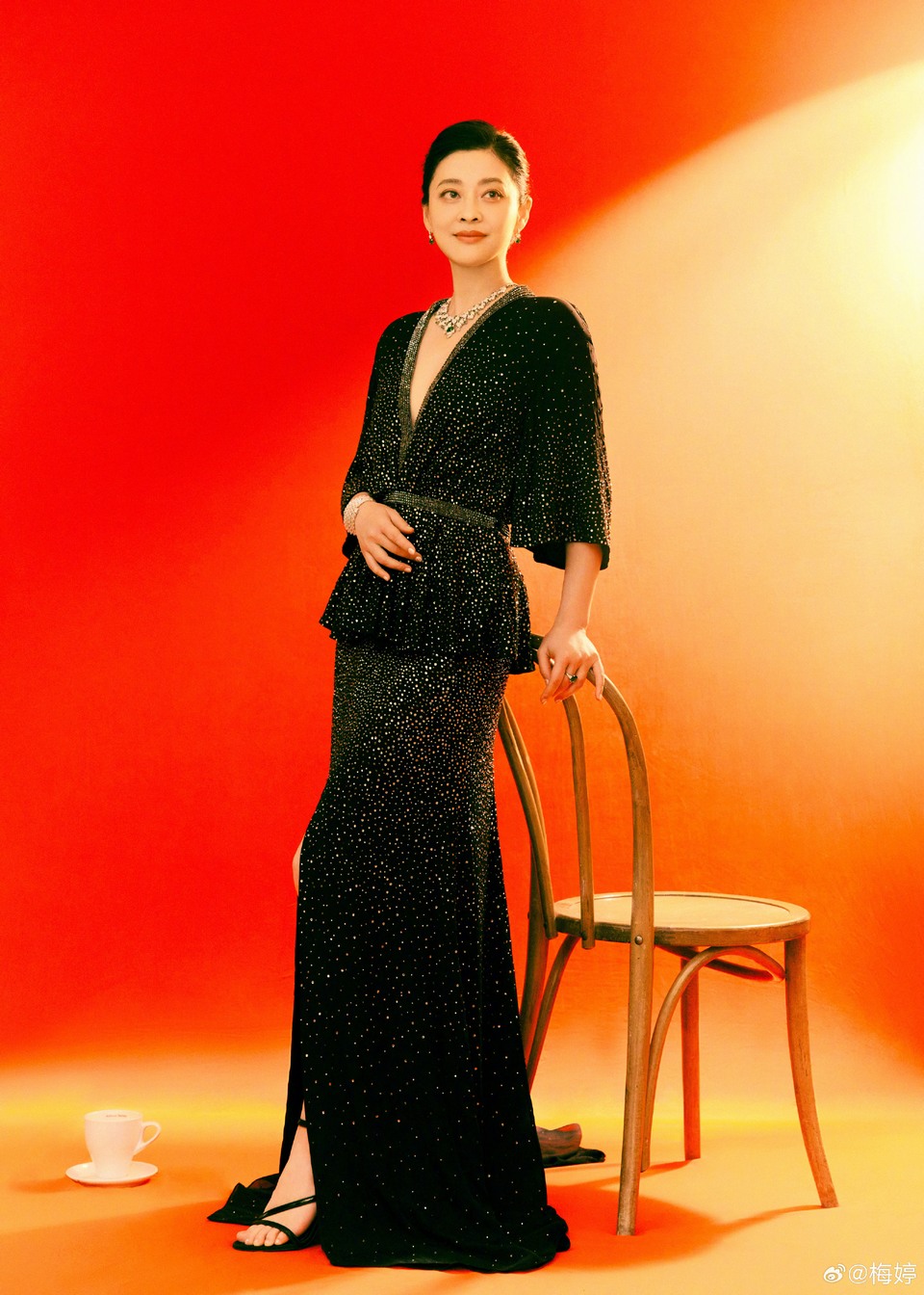 梅婷身著(zhù)黑色柔軟緞面躍動(dòng)流光 展露曼妙逸影
