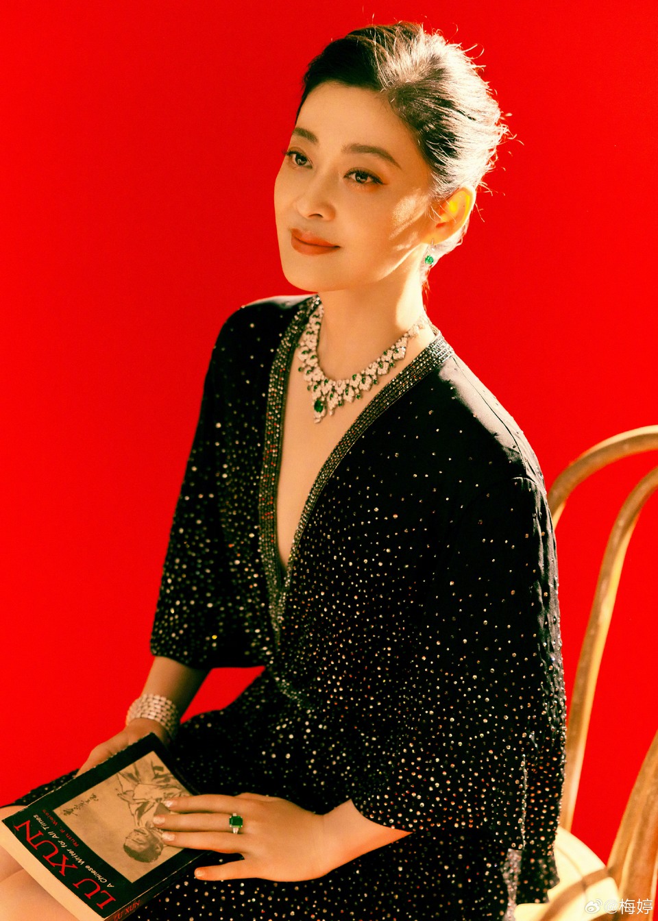 梅婷身著(zhù)黑色柔軟緞面躍動(dòng)流光 展露曼妙逸影