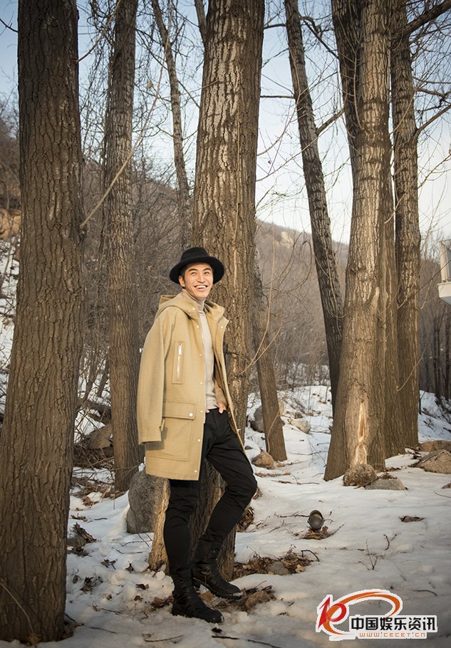 孟召重身著(zhù)暖色大衣 盡顯時(shí)尚前衛的一面