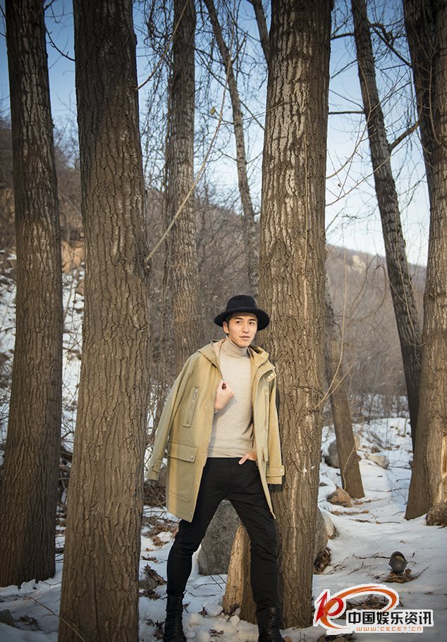 孟召重身著(zhù)暖色大衣 盡顯時(shí)尚前衛的一面