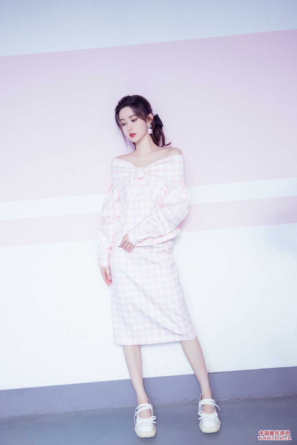 孟子義粉白相間一字肩套裙甜美溫柔婉約精致