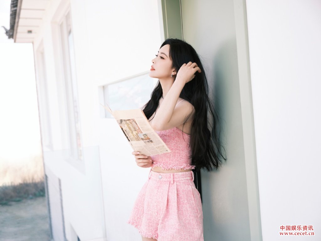 孟子義粉色清涼套裝照 美眸流轉清新自在