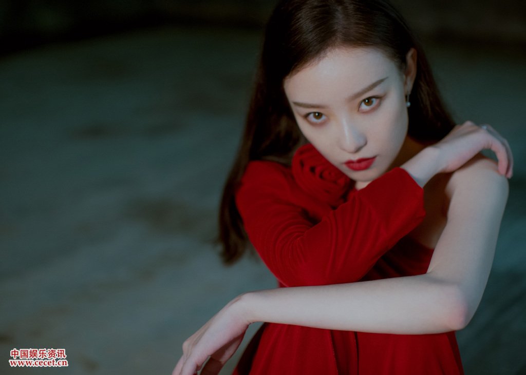 倪妮大紅長(cháng)裙媚惑寫(xiě)真 眼神凝視紅唇搶鏡
