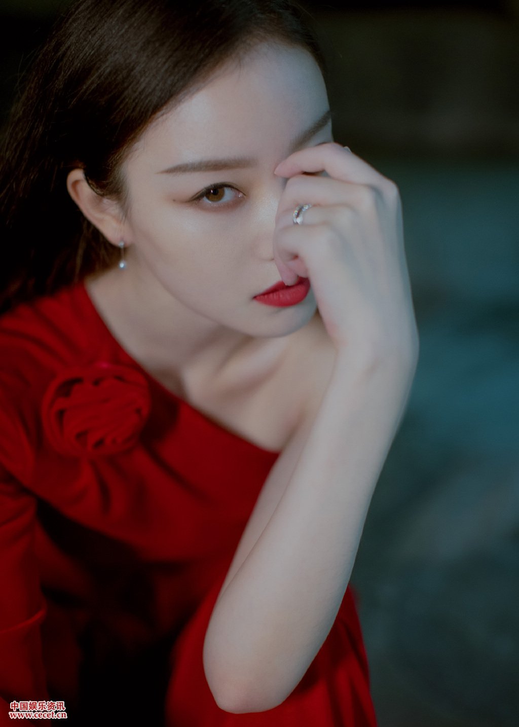 倪妮大紅長(cháng)裙媚惑寫(xiě)真 眼神凝視紅唇搶鏡