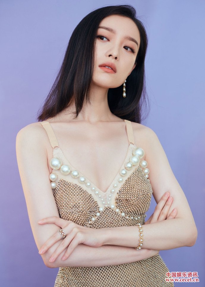 倪妮金色鑲珍珠吊帶透視裙 好身材一覽無(wú)遺