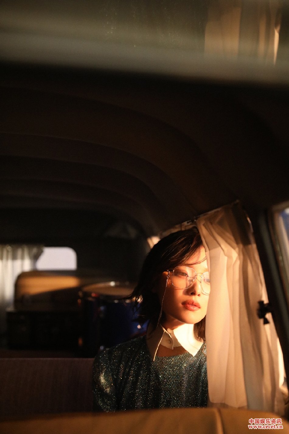 倪妮鏈條眼鏡颯氣十足 日落的車(chē)里復古又浪漫