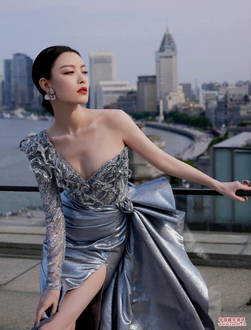 倪妮銀色斜肩拖尾禮服 流光溢彩盡顯未來(lái)質(zhì)感