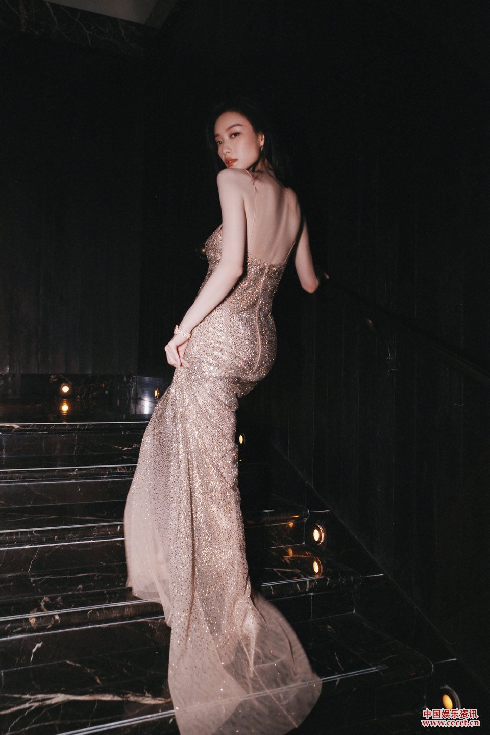 倪妮金色禮服夜中閃耀 光與影的交錯嫵媚動(dòng)人