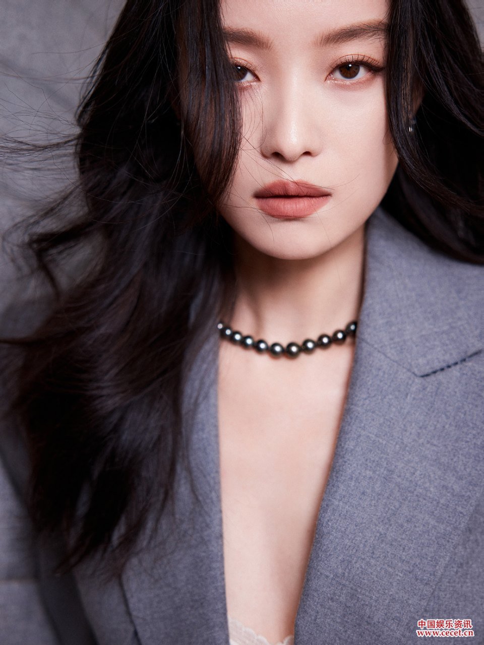 倪妮身著(zhù)灰色西服套裝 干練線(xiàn)條利落大方
