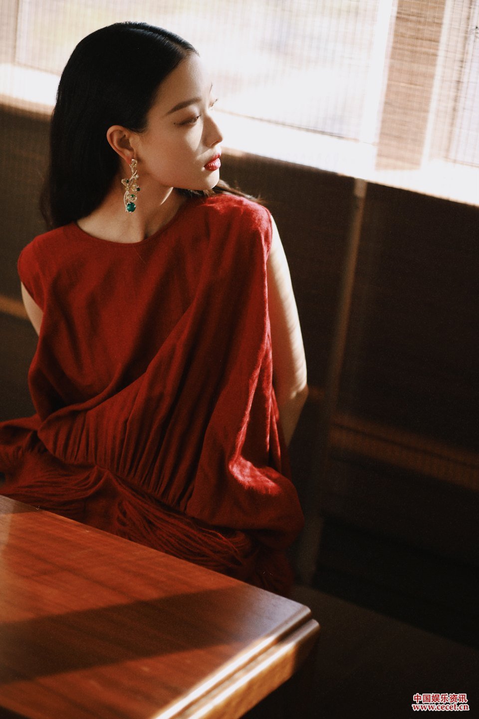 倪妮紅色絲絨套裝張揚所愛(ài) 走走停停天生絕配