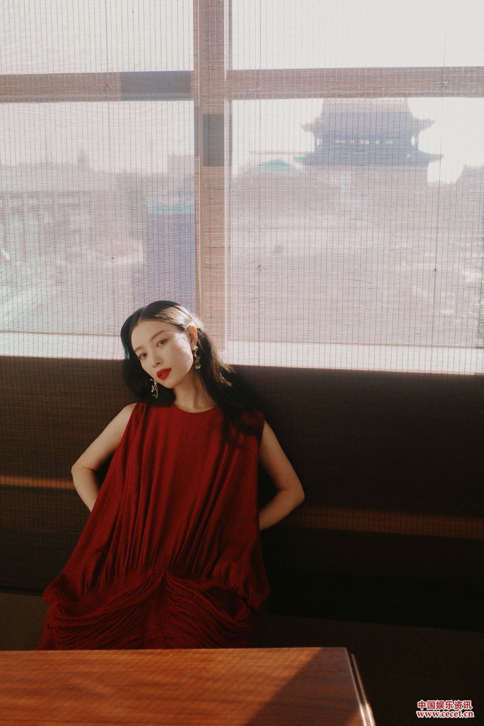 倪妮紅色絲絨套裝張揚所愛(ài) 走走停停天生絕配