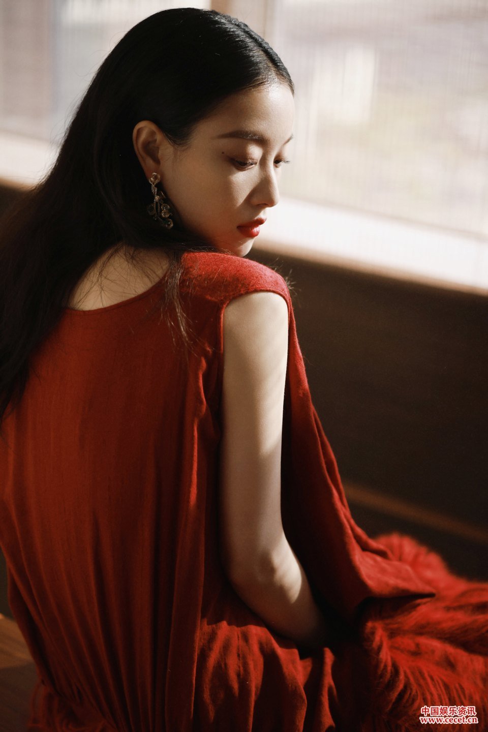倪妮紅色絲絨套裝張揚所愛(ài) 走走停停天生絕配