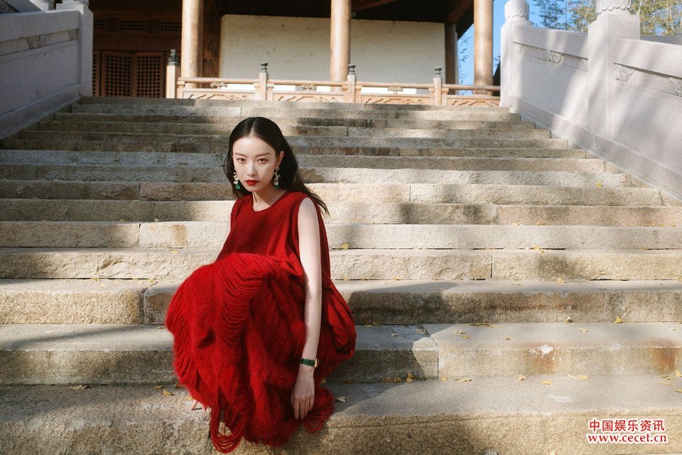 倪妮紅色絲絨套裝張揚所愛(ài) 走走停停天生絕配