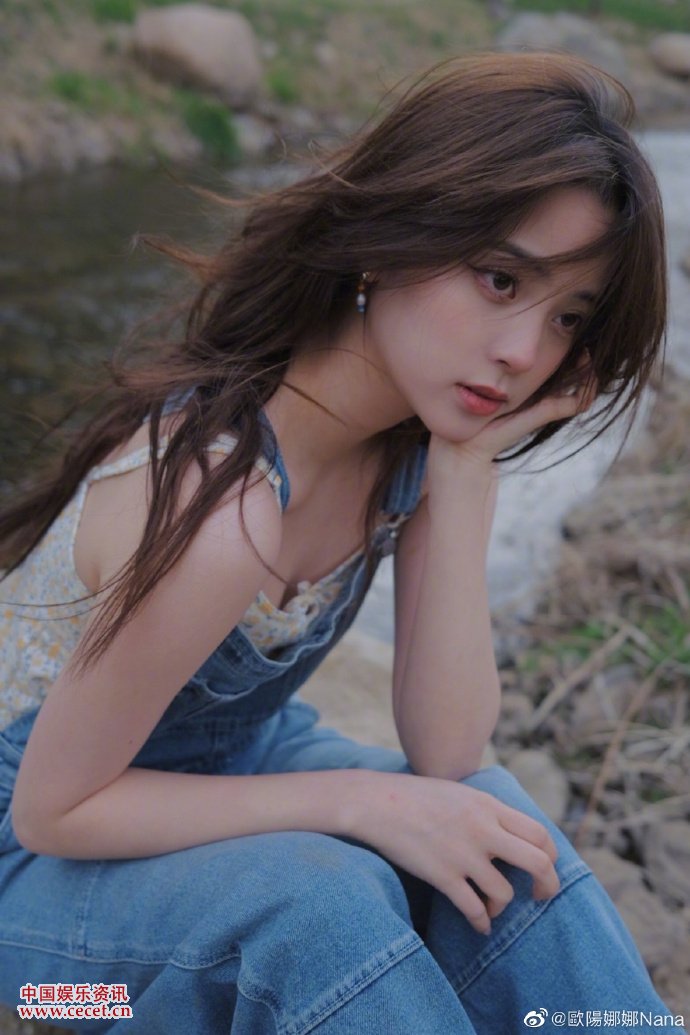 歐陽(yáng)娜娜小碎花吊帶搭配牛仔背帶褲清新甜美