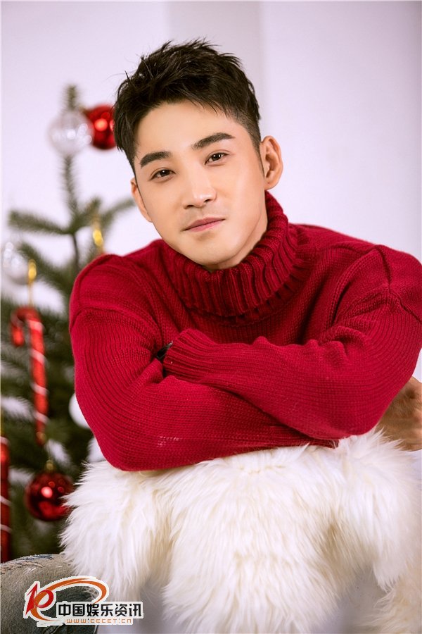 龐瀚辰酒紅色高領(lǐng)毛衣和做舊風(fēng)牛仔褲潮范十足