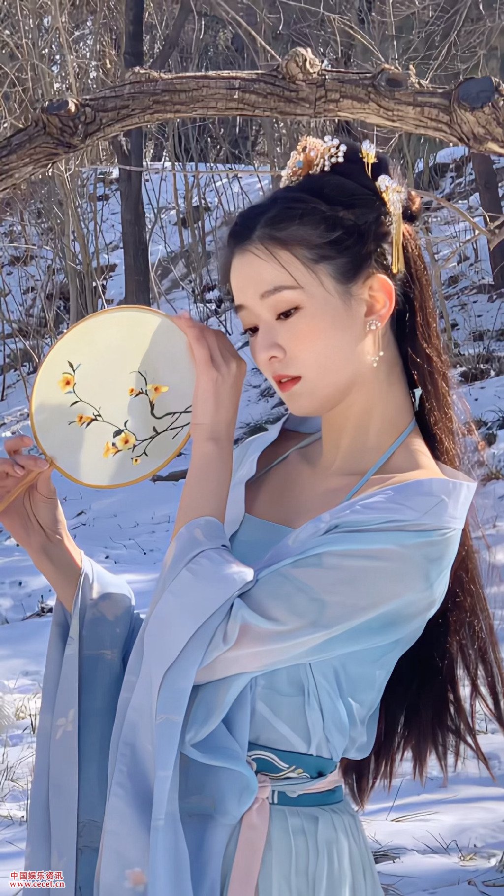 喬欣雪地古裝寫(xiě)真 水藍色古風(fēng)長(cháng)裙仙氣十足