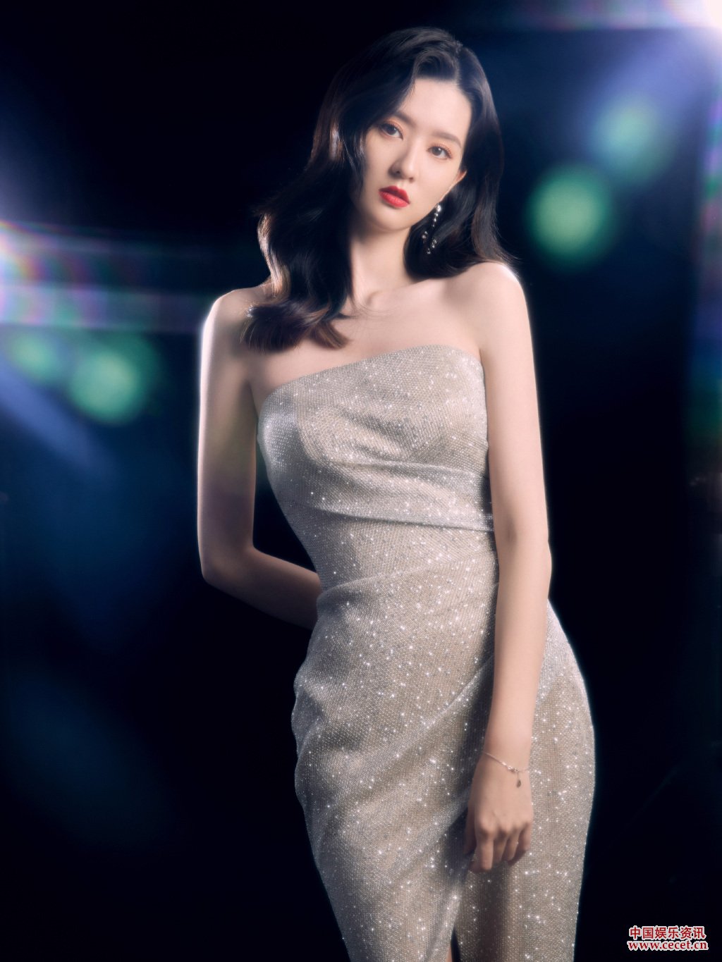喬欣黑色波浪長(cháng)發(fā)搭配銀色長(cháng)裙展露精致魅力
