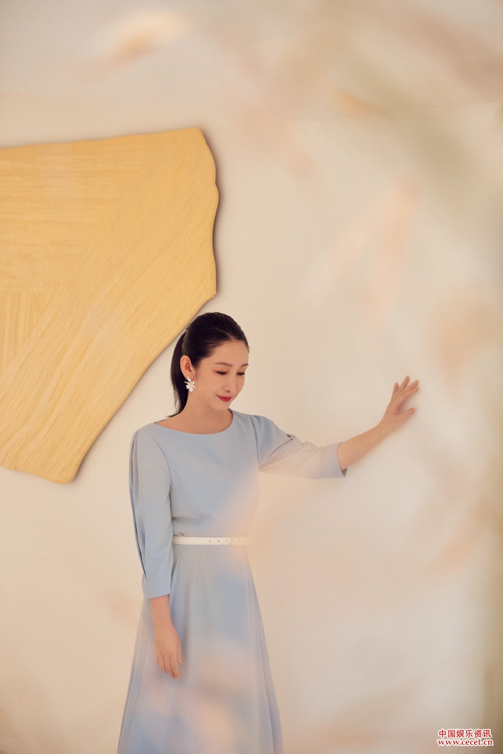 秦海璐藍色長(cháng)裙初冬與光同行盡顯優(yōu)雅美麗