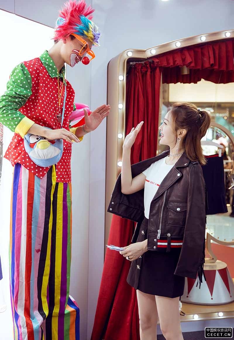 秦嵐置身馬戲團 修身線(xiàn)衫搭配皮質(zhì)五角星短裙