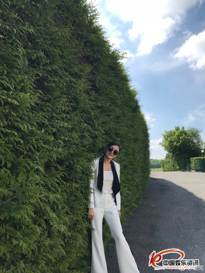 秦嵐黑白搭配置身花畔 美人與花相得益彰