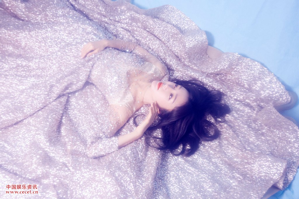 秦嵐粉底亮點(diǎn)長(cháng)裙耀眼 長(cháng)發(fā)披肩溫柔端莊