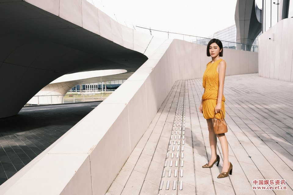 秦嵐身著(zhù)一抹落日暉黃感知初秋意蘊 詮釋幾何藝術(shù)