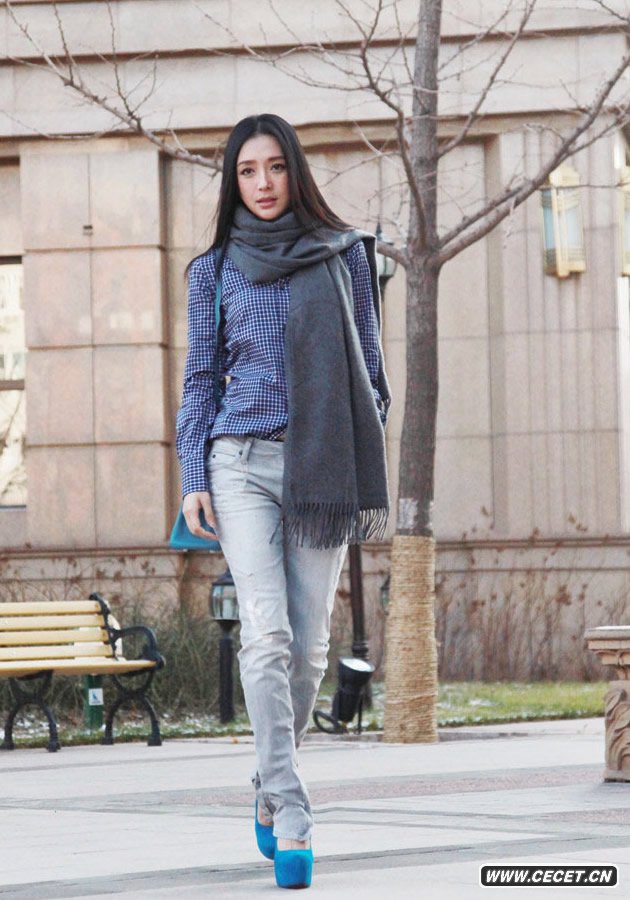 秦嵐街拍LOOK 寶藍色高跟鞋時(shí)髦搶眼