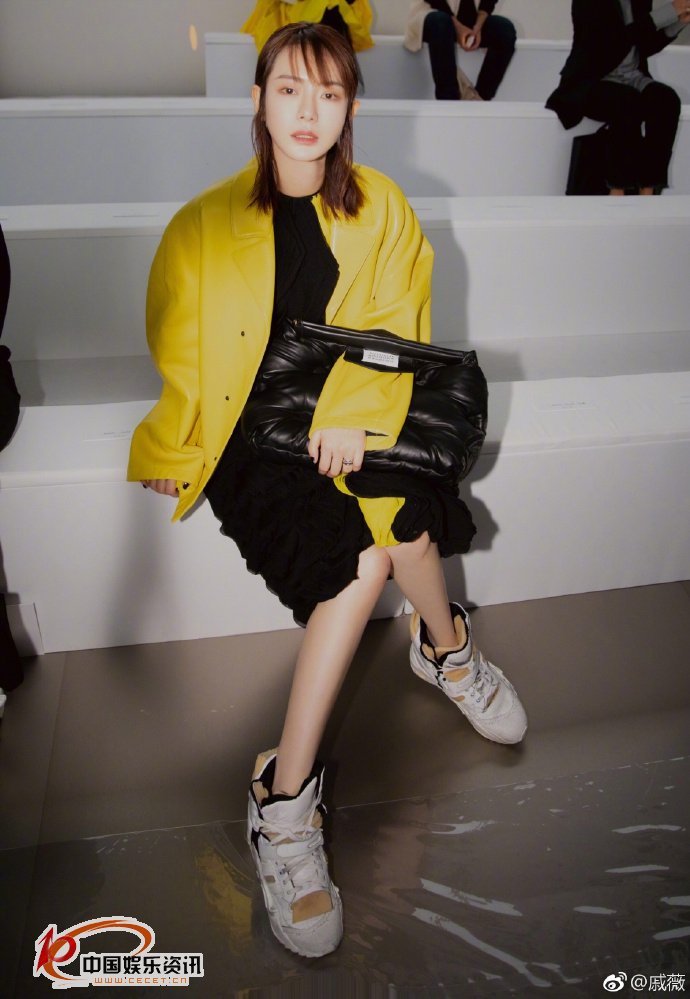 戚薇黃色寬松大外套照 劉海造型帥氣隨性