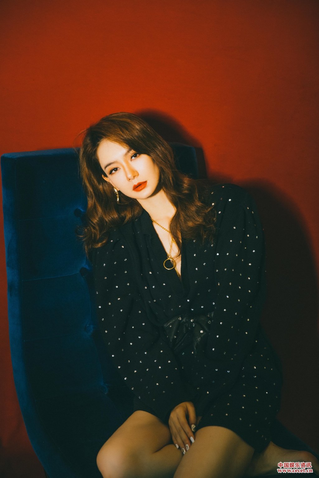 戚薇紅色復古風(fēng)穿搭照 秀發(fā)拂面紅唇吸睛