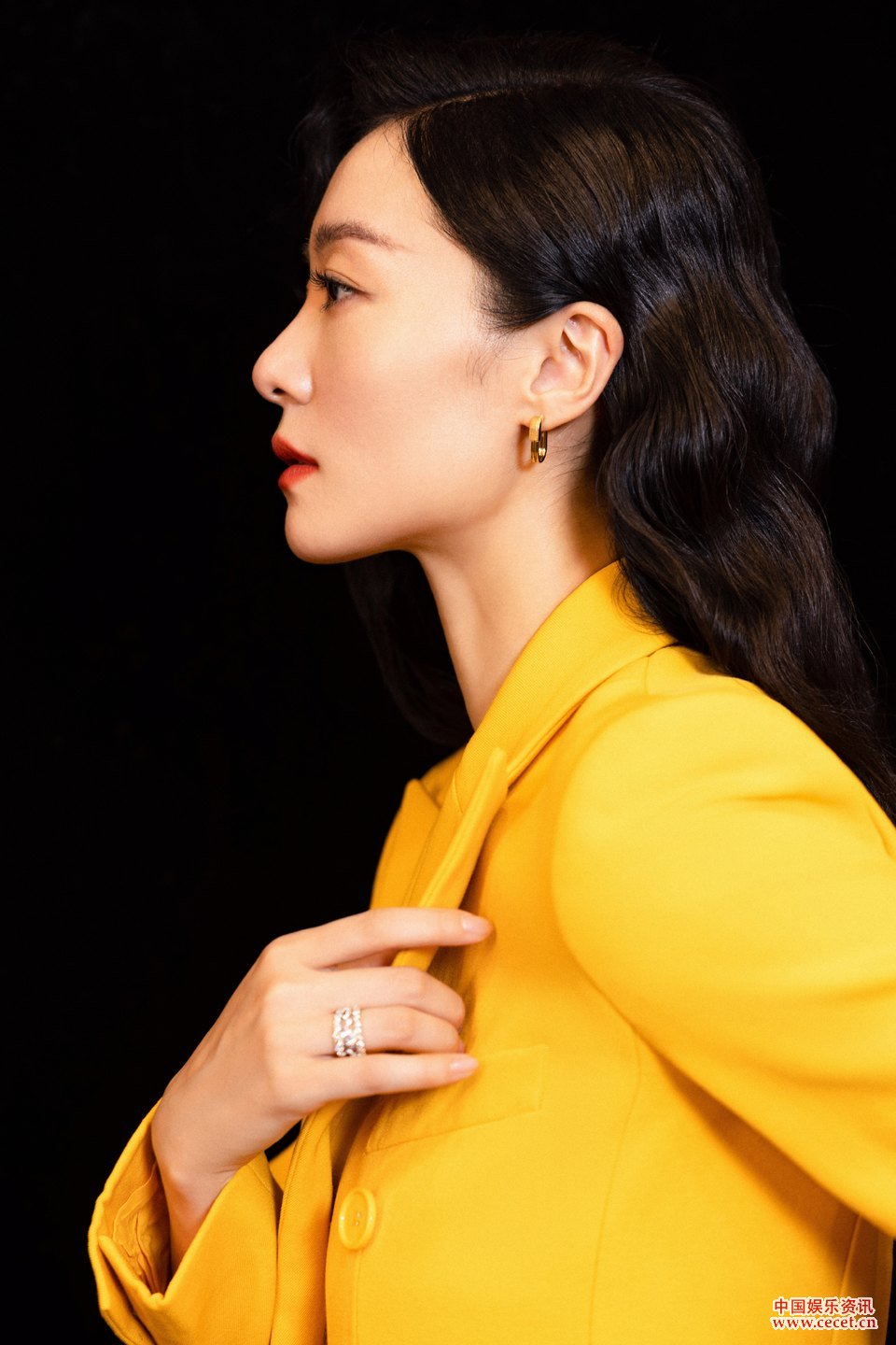 齊溪黃色西服套裝亮相 率真自如清雅怡然