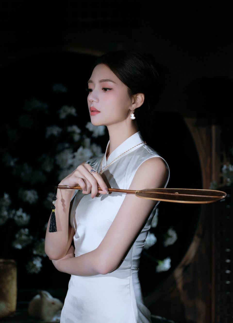 任敏著(zhù)一襲旗袍喚優(yōu)雅時(shí)光 白玉墜枝頭幽谷蘭花開(kāi)