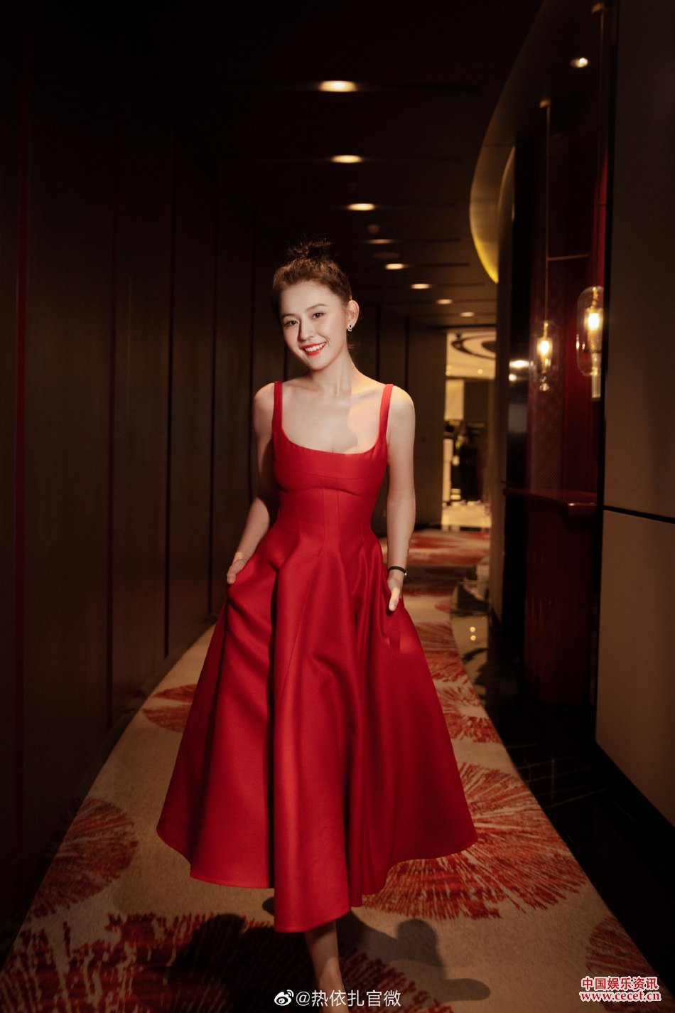 熱依扎吊帶紅裙照 身材豐腴充滿(mǎn)著(zhù)肉感和美感