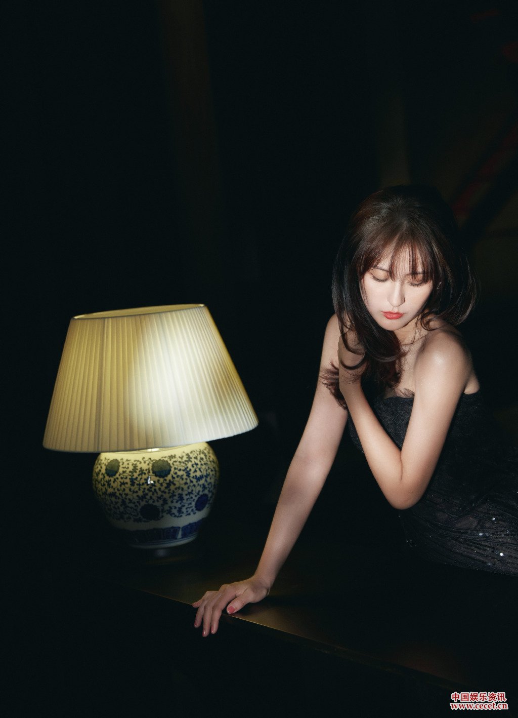 熱依扎黑色郁金香禮裙 黑紗曼妙墜入如幻夢(mèng)境