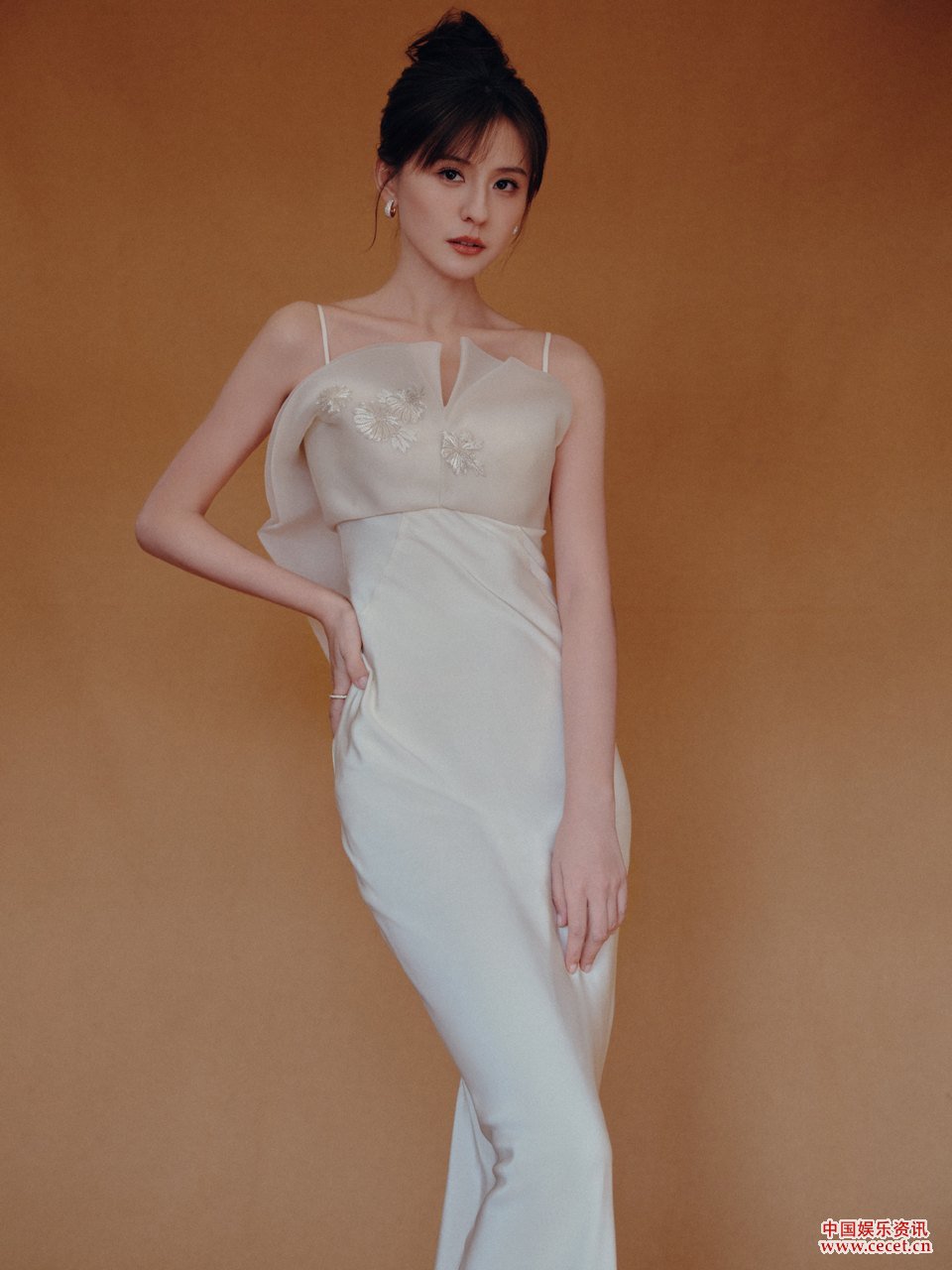 熱依扎曼妙白裙蕭瑟之美 眼波流轉清甜自信