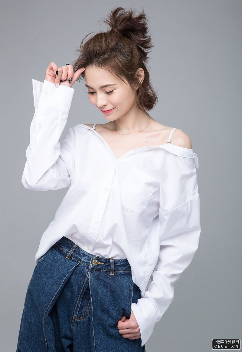 神龍茂白襯衫寫(xiě)真 香肩微露亮出性感鎖骨