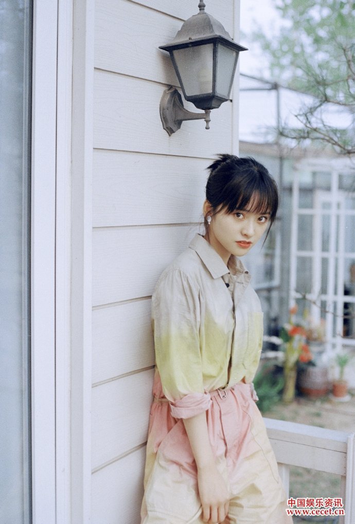 沈月化身油畫(huà)少女 身穿漸變色連體褲造型清新
