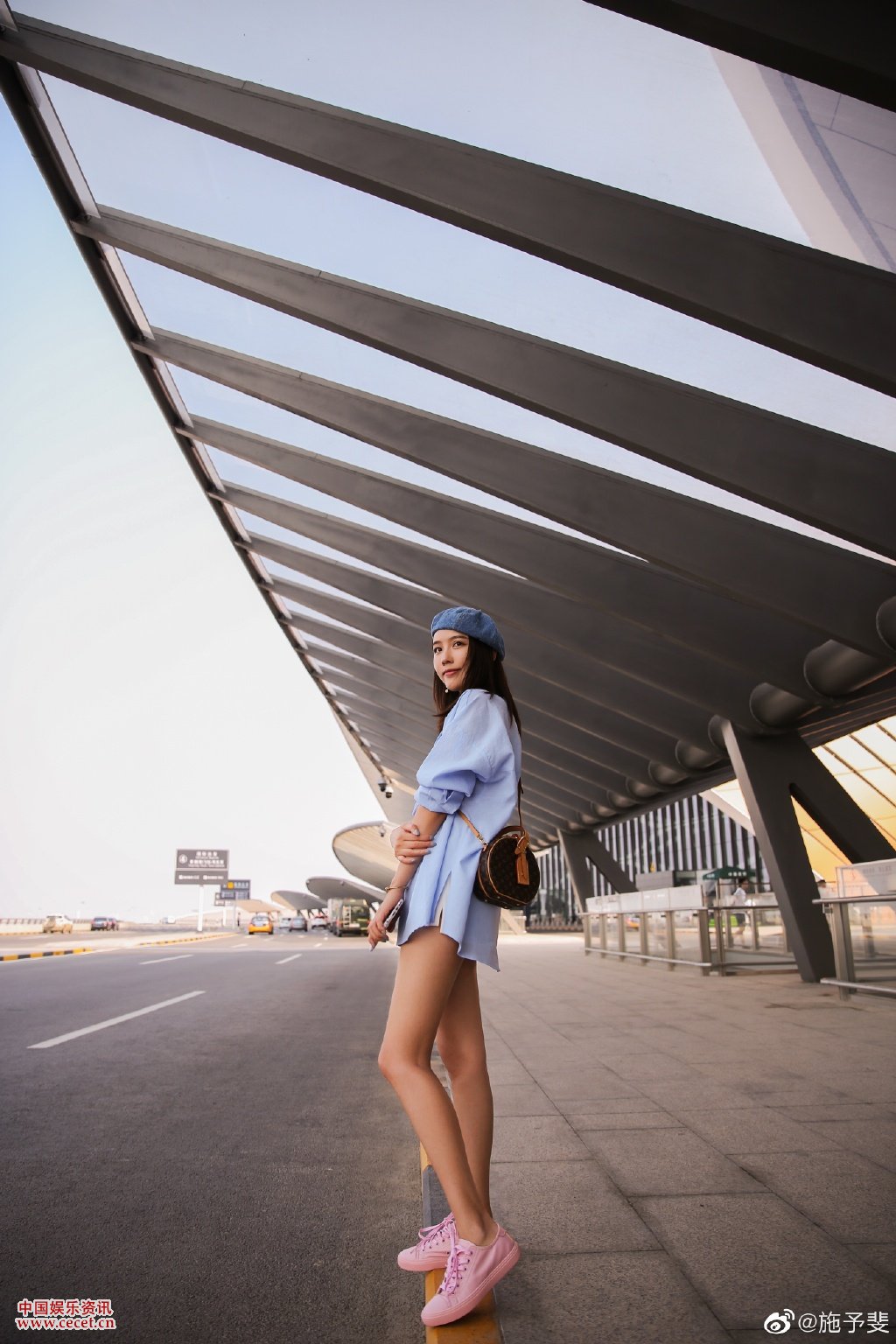 施予斐大興機場(chǎng)擺拍照 滿(mǎn)屏的大長(cháng)腿令人羨慕