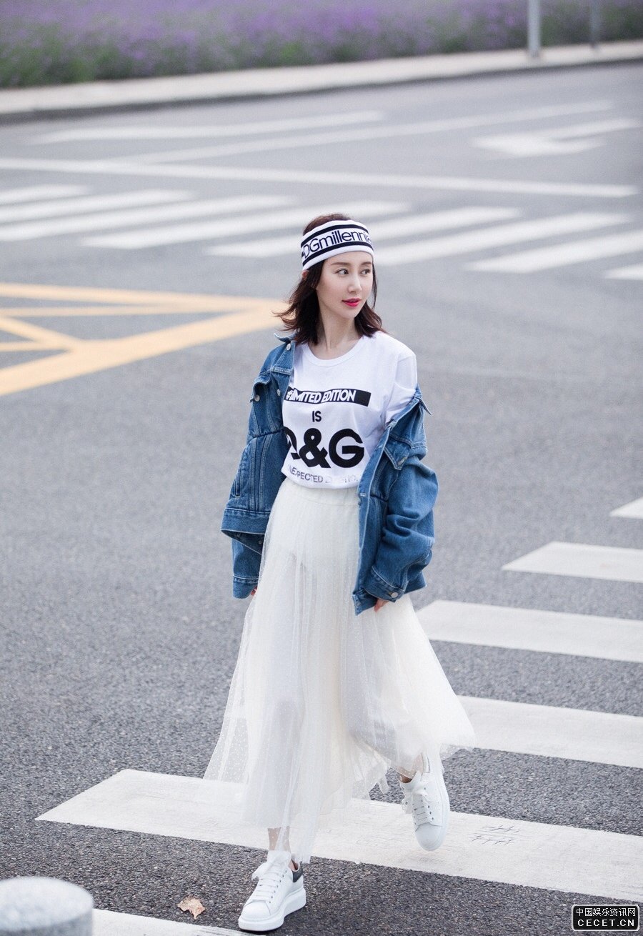 舒暢街拍盡顯青春活力 牛仔外套內搭白色T恤