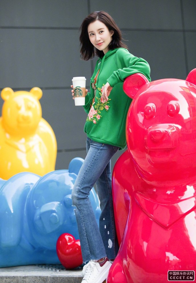 舒暢綠色衛衣搭配藍色牛仔褲盡顯青春活力