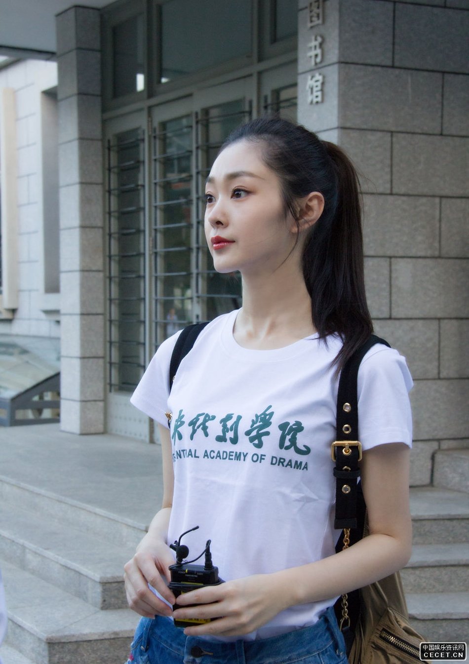 宋軼現身中戲校園 白色校服牛仔褲清爽活力