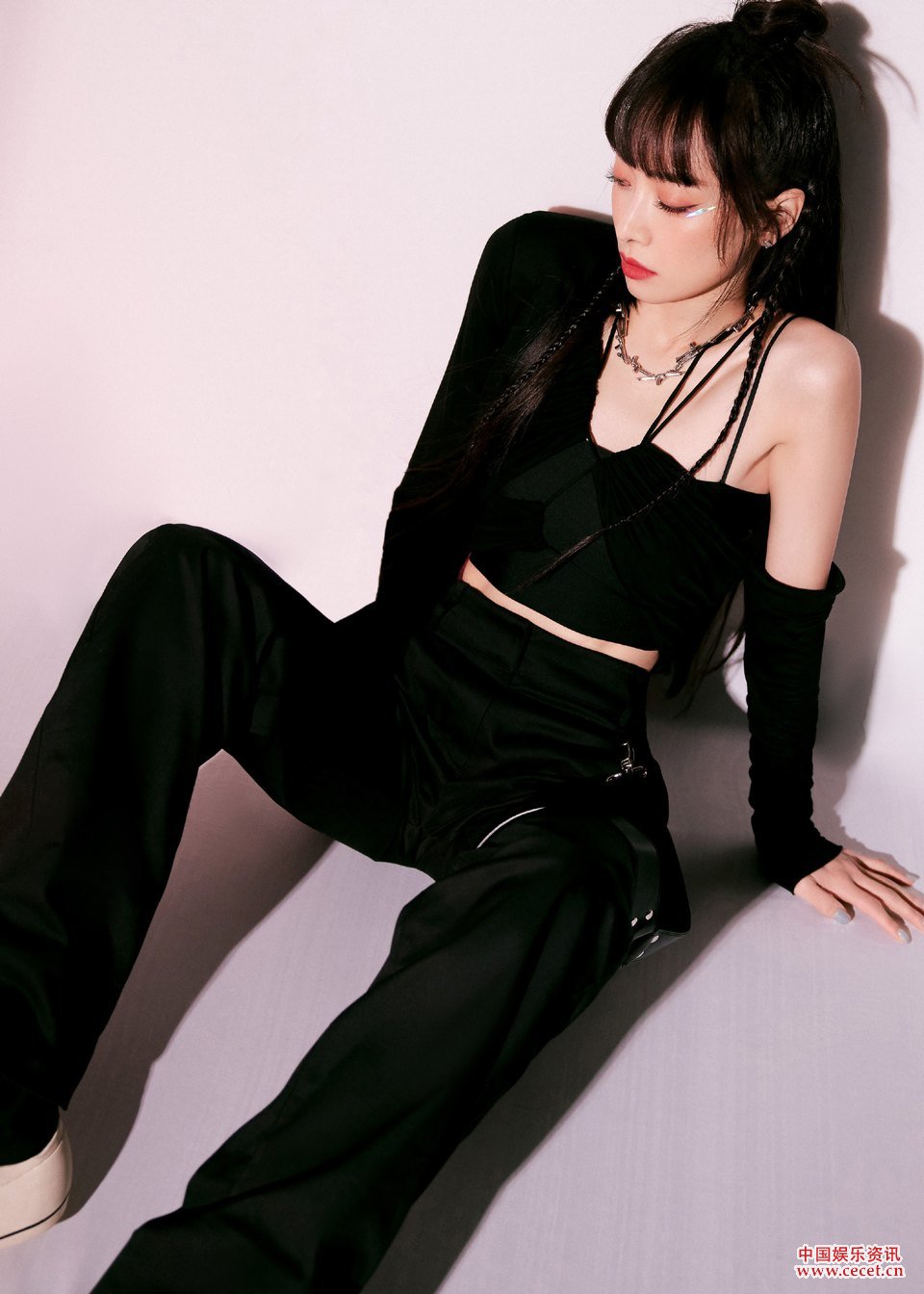 宋茜一身黑色潮酷休閑裝扮又酷又颯 氣場(chǎng)全開(kāi)