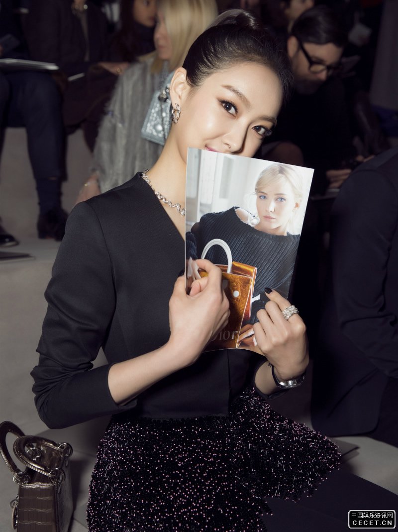 宋茜觀(guān)看時(shí)尚大秀 利落馬尾配黑套裝顯成熟