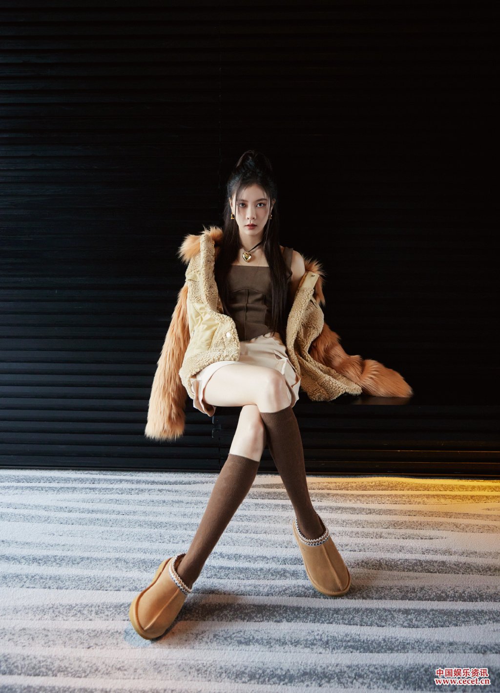 宋妍霏一身栗色穿搭搭配絨感外套時(shí)尚有型