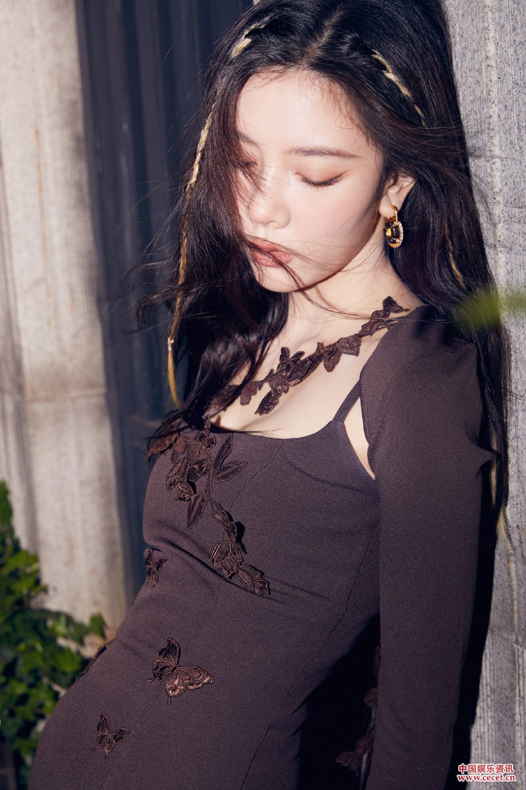 宋妍霏棕色刺繡吊帶連衣裙搭配雪地靴設計感十足
